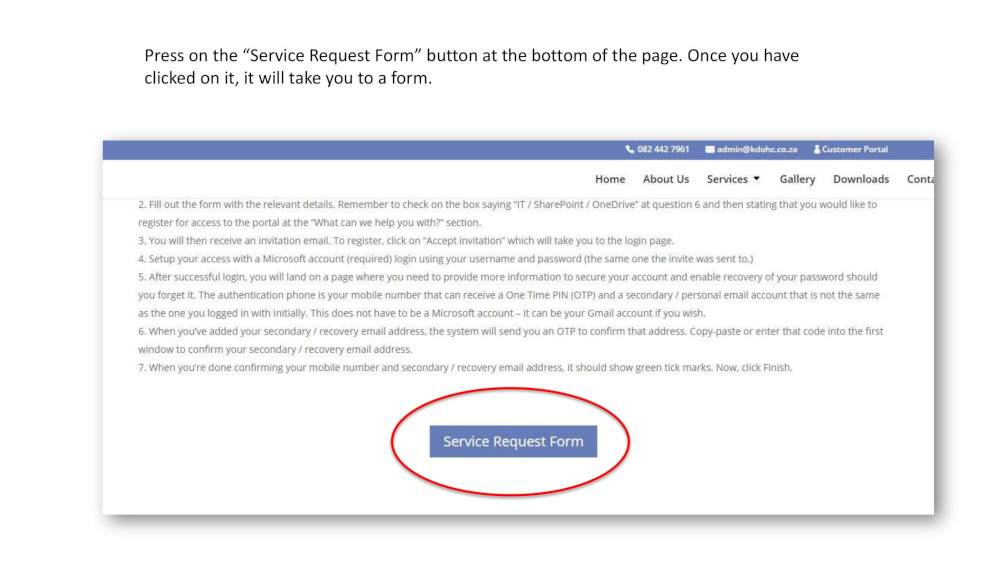 - Press on the “Service Request Form” button at the bottom of the section. Once you have clicked on it, it will take you to a form.
